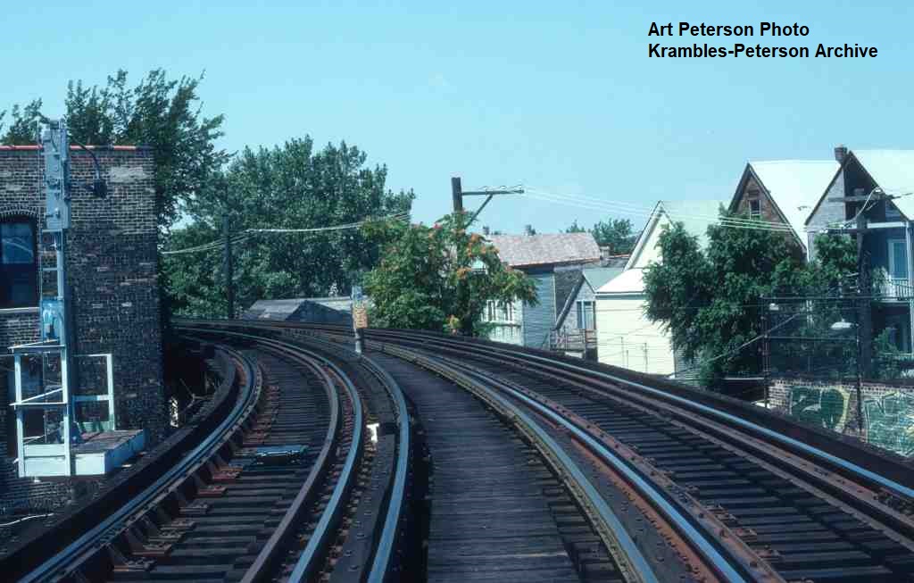KP1485-CTA Ravenswood, Looking Northwest at the curve above Sheffield Avenue - 08/09/1991