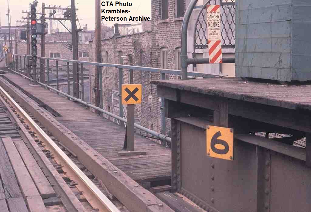 KP1486-CTA Ravenswood, Some of the southbound berth markers at the Armitage Station - c02/1965