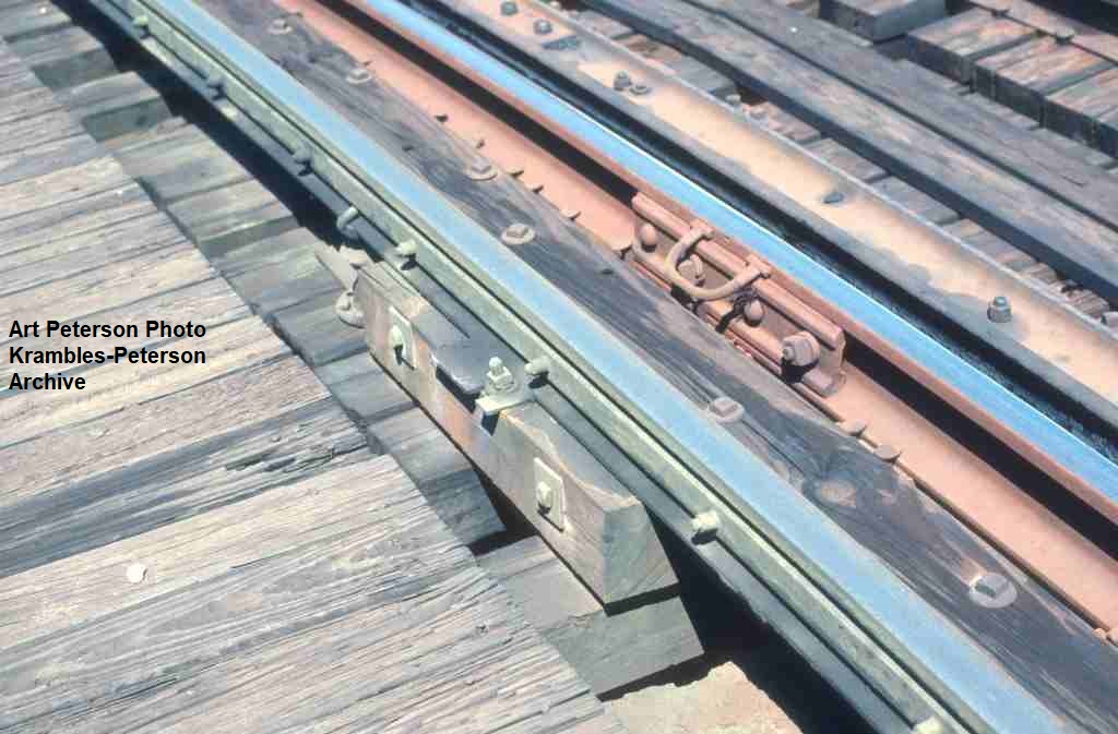 KP1492-CTA Ravenswood, Close-up of a wood third rail anchor near Halsted & North - 08/09/1991