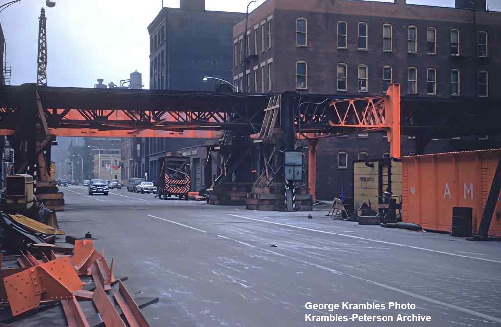 KP1534-CTA Ravenswood, Ongoing reconstruction work on the structure and station at the Merchandise Mart - 07/02/1988