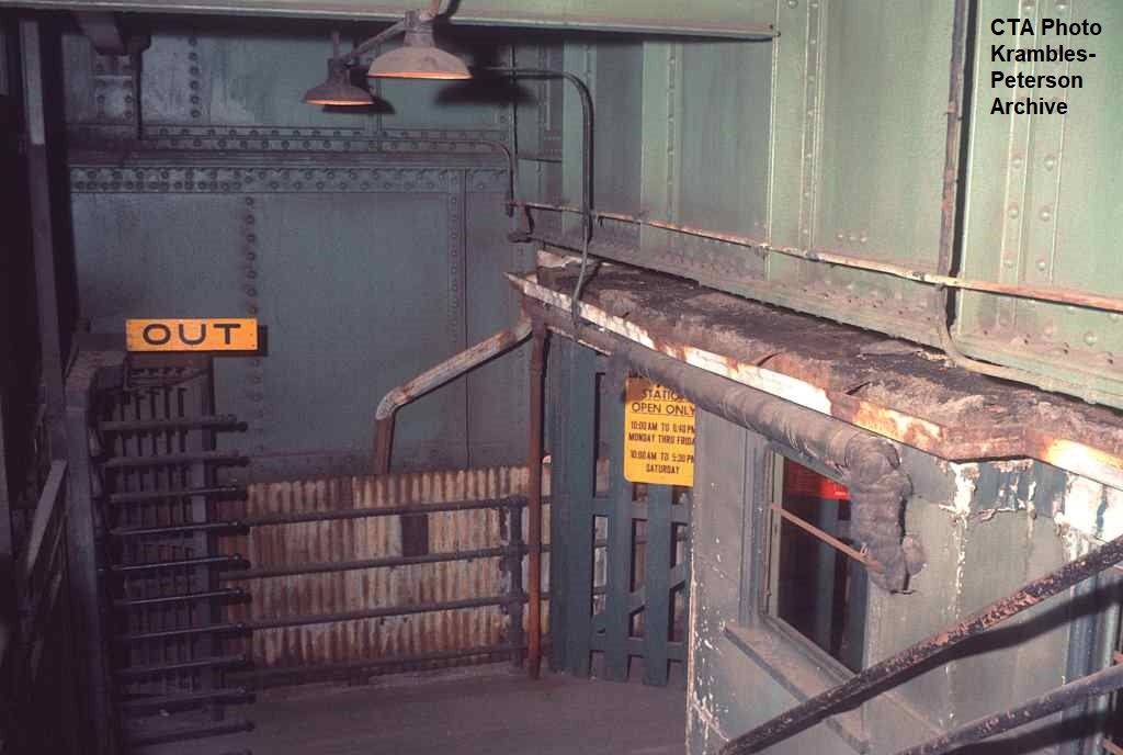 KP1520-CTA Ravenswood, East entrance to the mezzanine of the Grand & Franklin Station - 08/1970