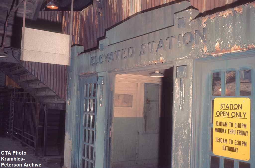KP1515-CTA Ravenswood, Detailed view of the entryway into the mezzanine level of the Grand & Franklin Station as viewed from the west side - 08/1970