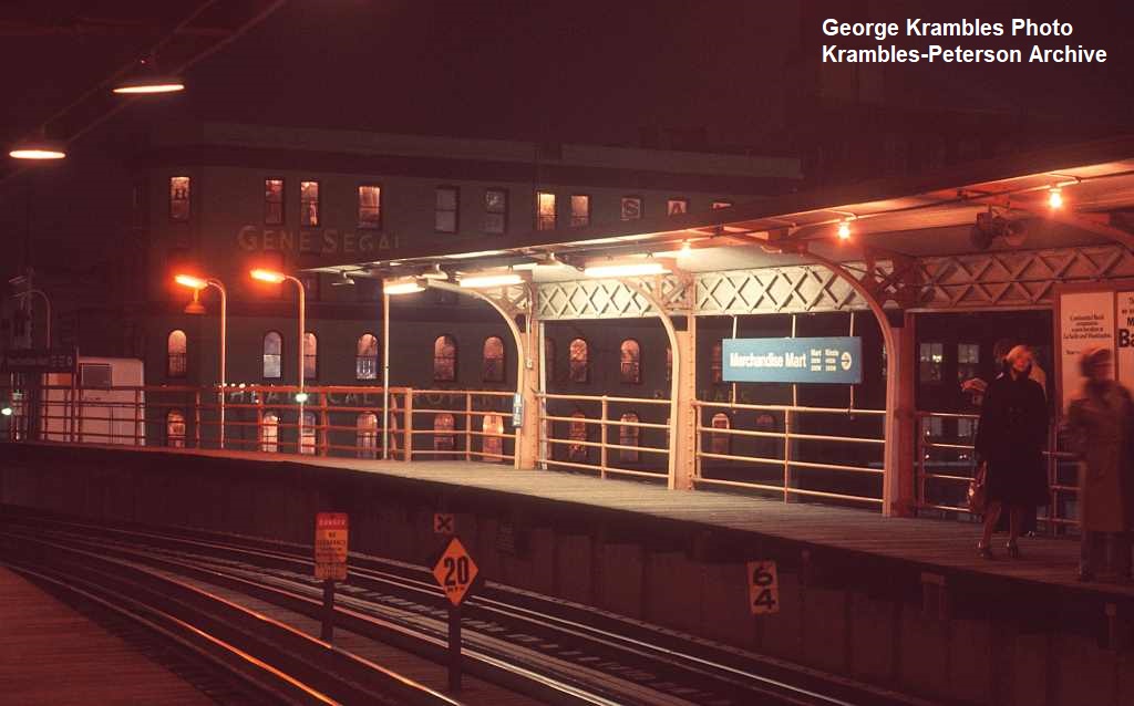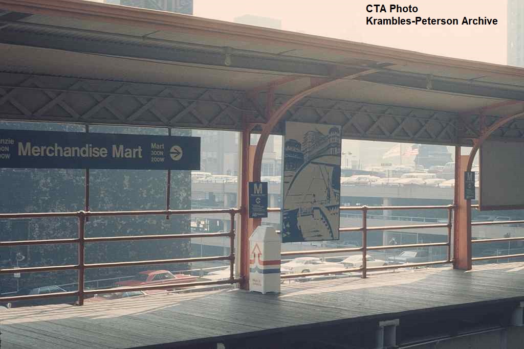 KP1529-CTA Ravenswood, Northbound Merchandise Mart Platform featuring new graphics - c10/1975