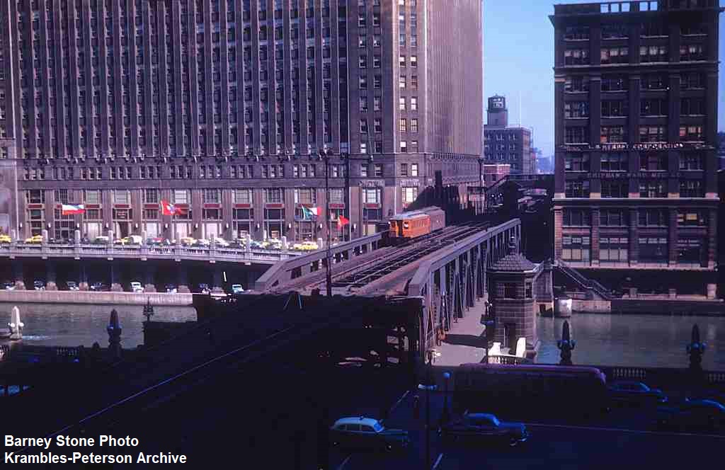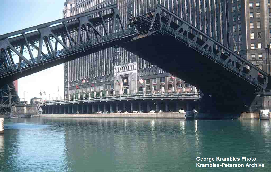 KP1536-CTA Ravenswood, Looking North-Northwest across the Wells Street Bridge - c1949