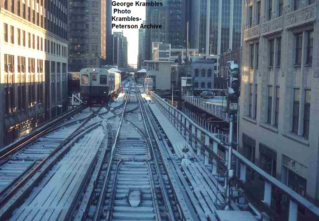 KP1510-CTA Ravenswood, Southbound train leaving the Chicago Station near Superior Street - 02/12/1981