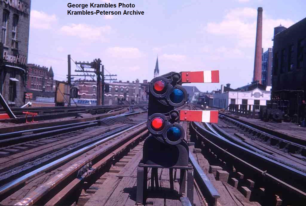 KP1545-CTA Ravenswood, Looking past the distant signal to the home signal at Tower 18 - 02/22/1974