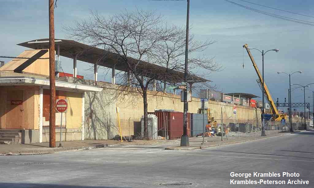 KP1674-CTA Lake-Dan Ryan, Looking West-Northwest at the Marion Entrance after the at-grade alignment and facilities had been removed.