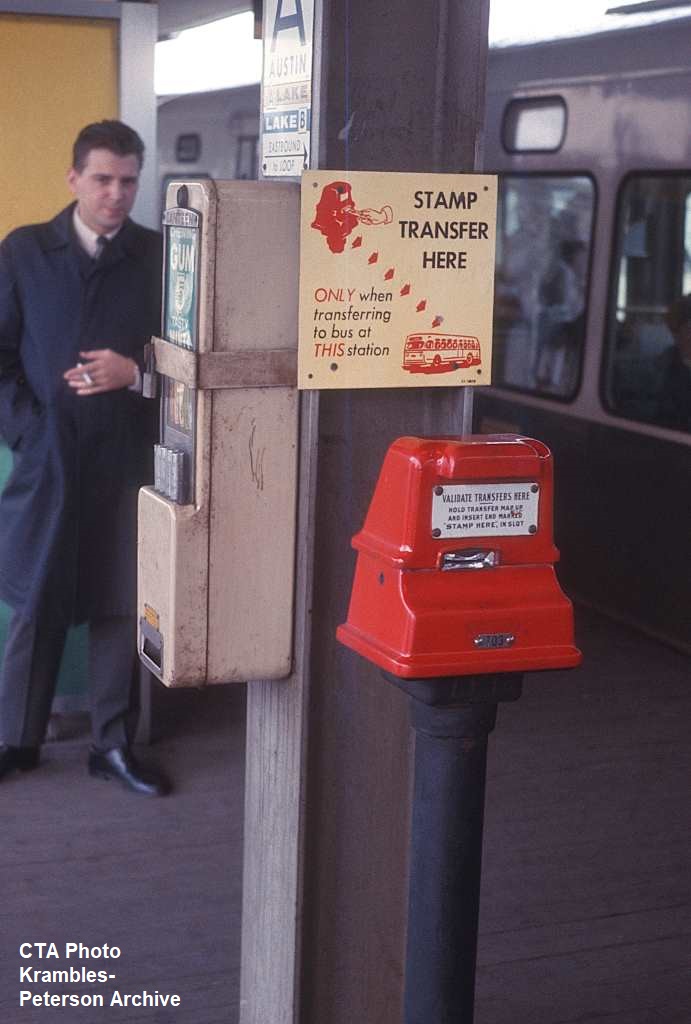 KP1653-CTA Lake-Dan Ryan, Transfer stamp on the Austin Station platform - c04/1967