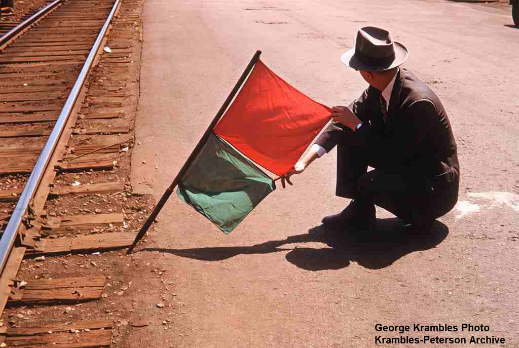 KP1659-CTA Lake-Dan Ryan, The at grade sections were used to try alternative methods of protecting slow zones. George Krambles is featured in this test of a red over greed combination near Euclid. - 05/29/1950