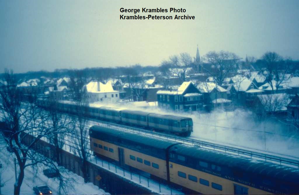 KP1668-CTA Lake-Dan Ryan, CTA and C&NW trains near North Boulevard - 03/1978