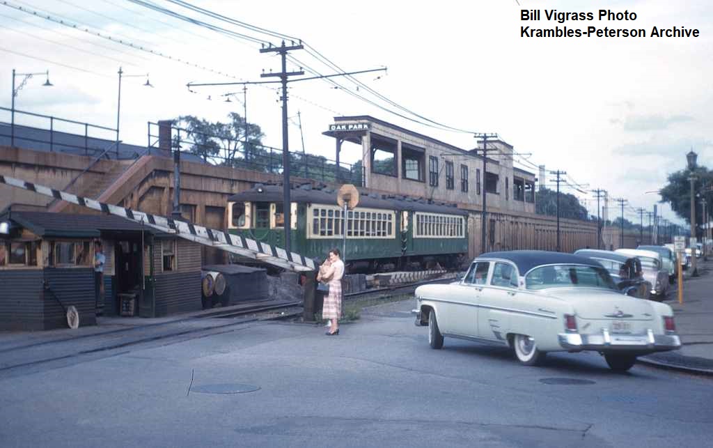 KP1661-CTA Lake-Dan Ryan, Looking west toward the grade level Oak Park Station - 09/23/1958