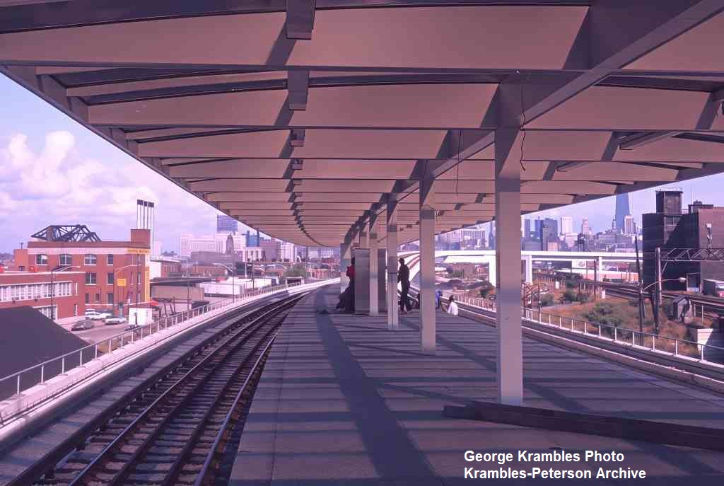 KP1731-CTA Lake-Dan Ryan, Looking north through the Cermak Station which featured very wide canopies, typical of the Dan Ryan and Kennedy Lines - 09/19/1969