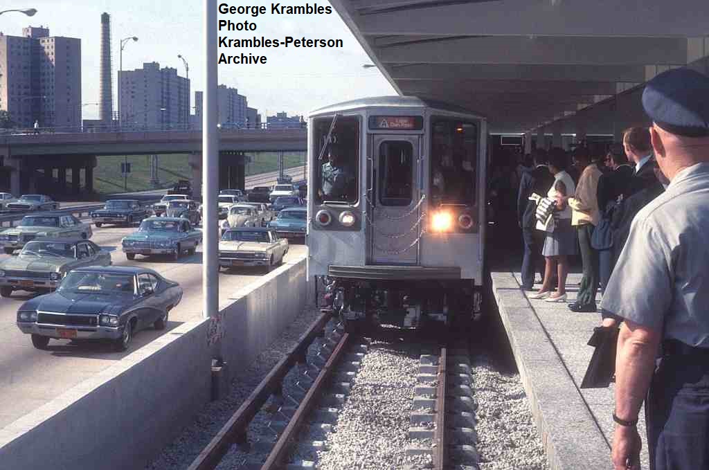 KP1739-CTA Lake-Dan Ryan, #2201-#2204 at the 35th Street Station during one of the demonstration runs over part of the Dan Ryan Line for the Institute for Rapid Transit. #2202 is visible on the south end of the train. - 06/27/1969