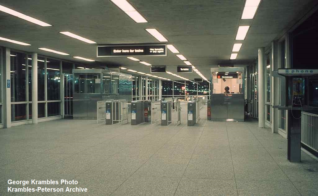 KP1742-CTA Lake-Dan Ryan, Looking south at the Agent's/Fare gate area from inside the 35th Street Station Mezzanine- 12/1969
