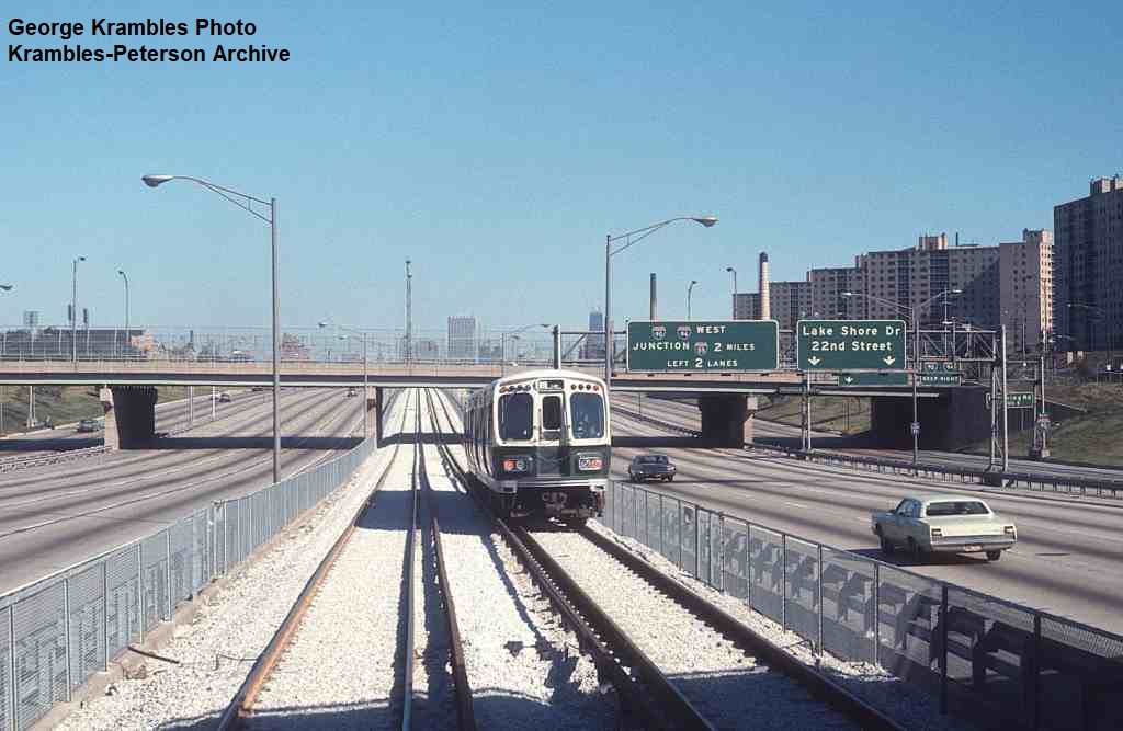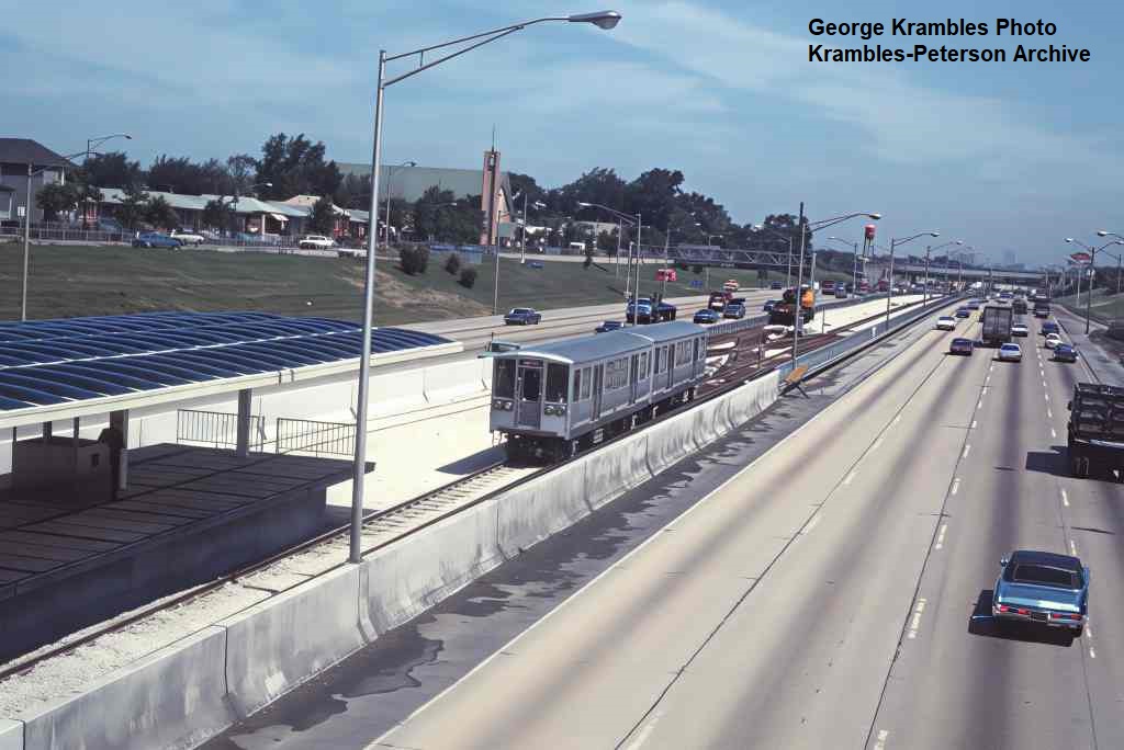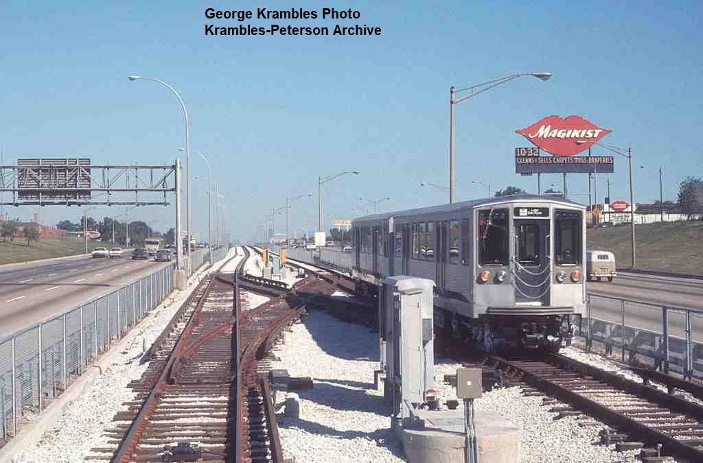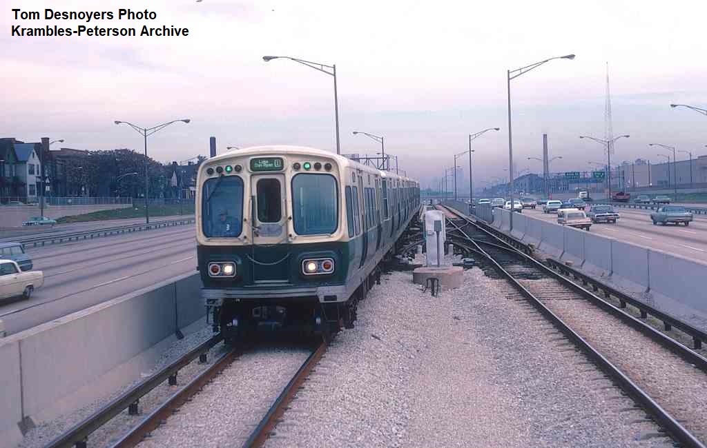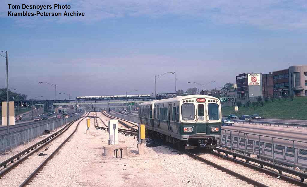 KP1747-CTA Lake-Dan Ryan, A Northbound train heading away from 43rd Street on the first day of Dan Ryan operation - 09/28/1969