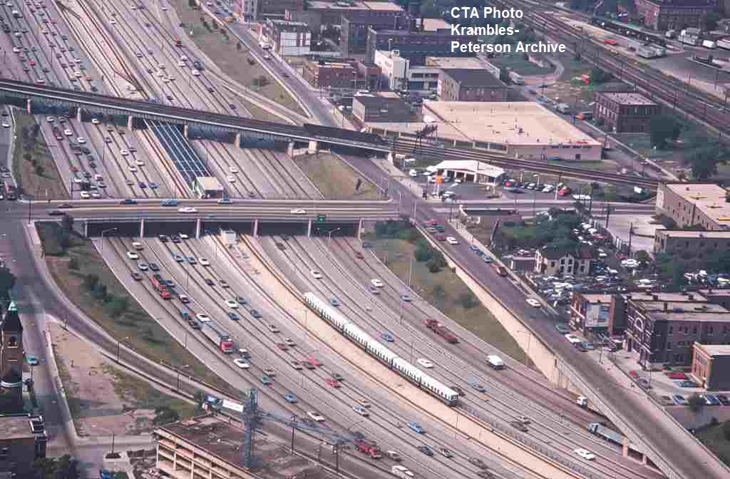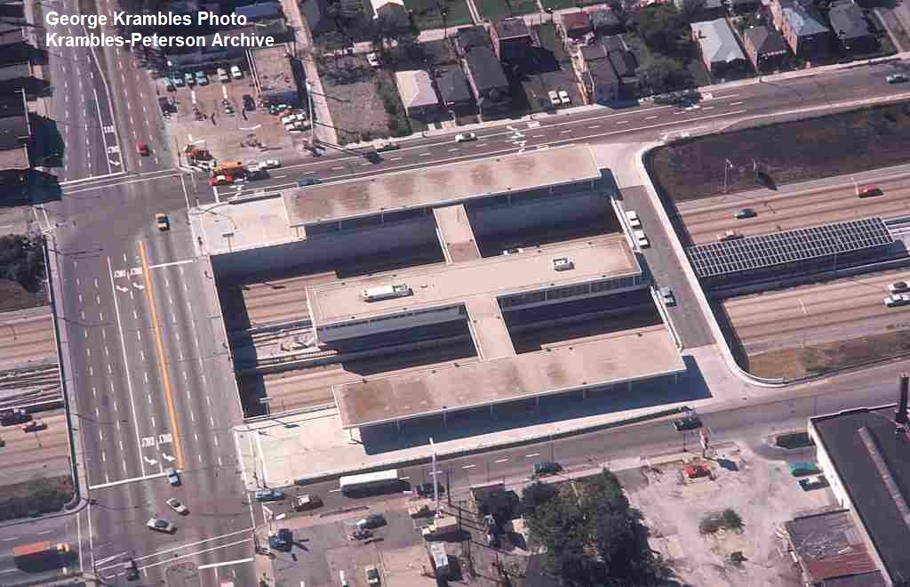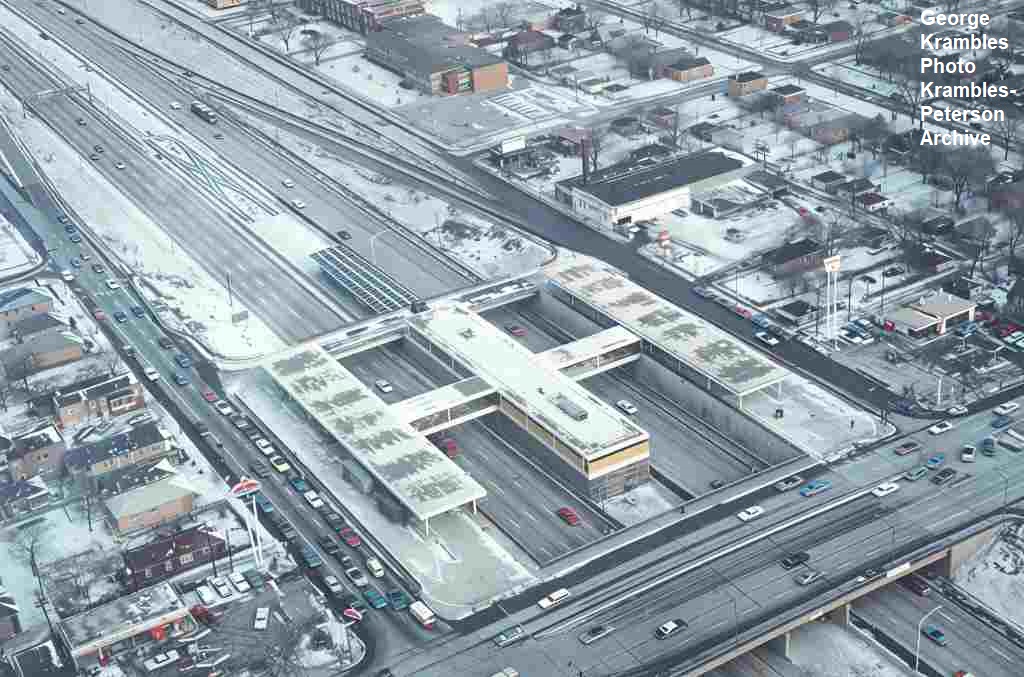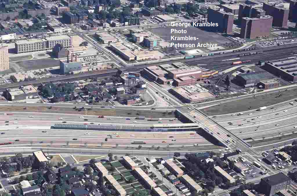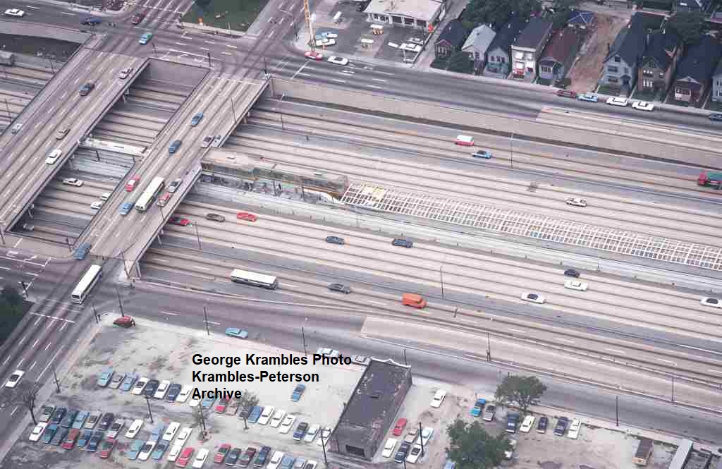 KP1750-CTA Lake-Dan Ryan, Aerial view looking West-Southwest over the construction of the Garfield Station - 06/05/1969