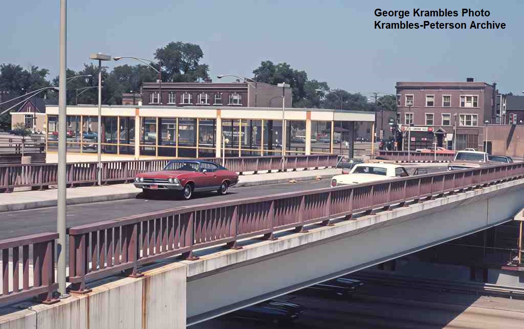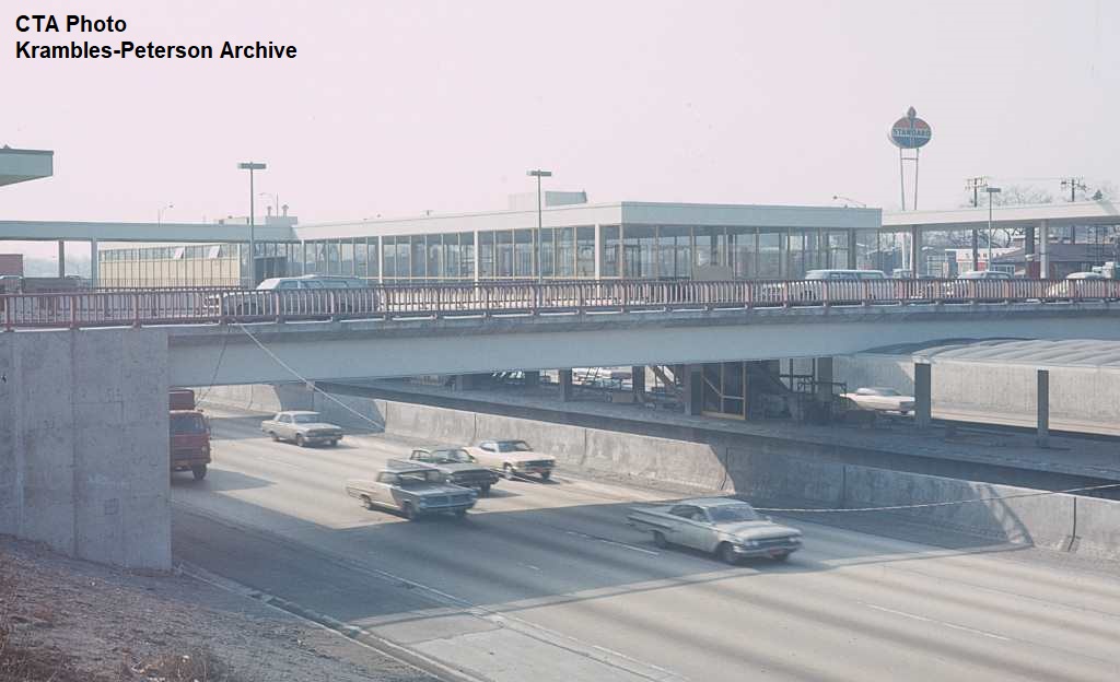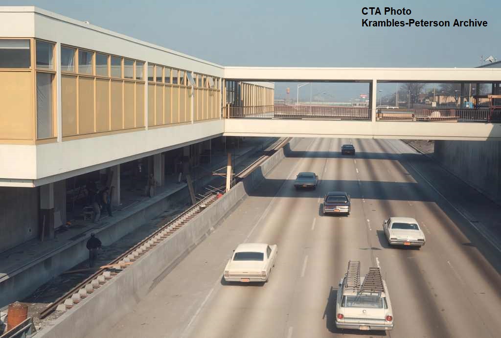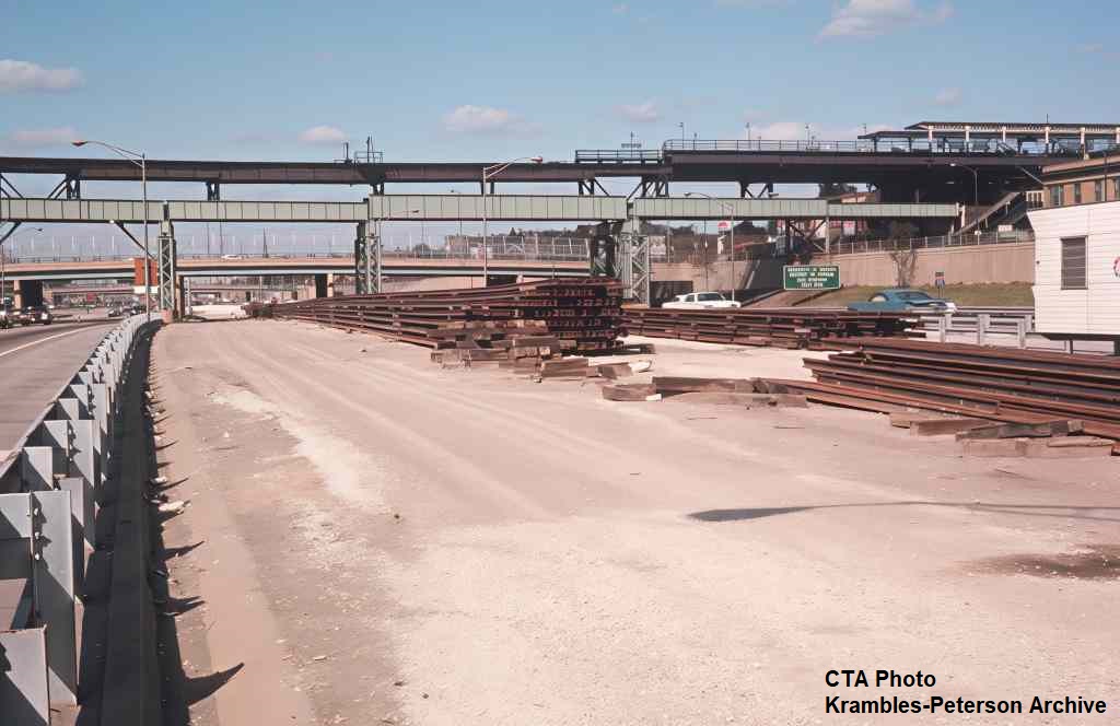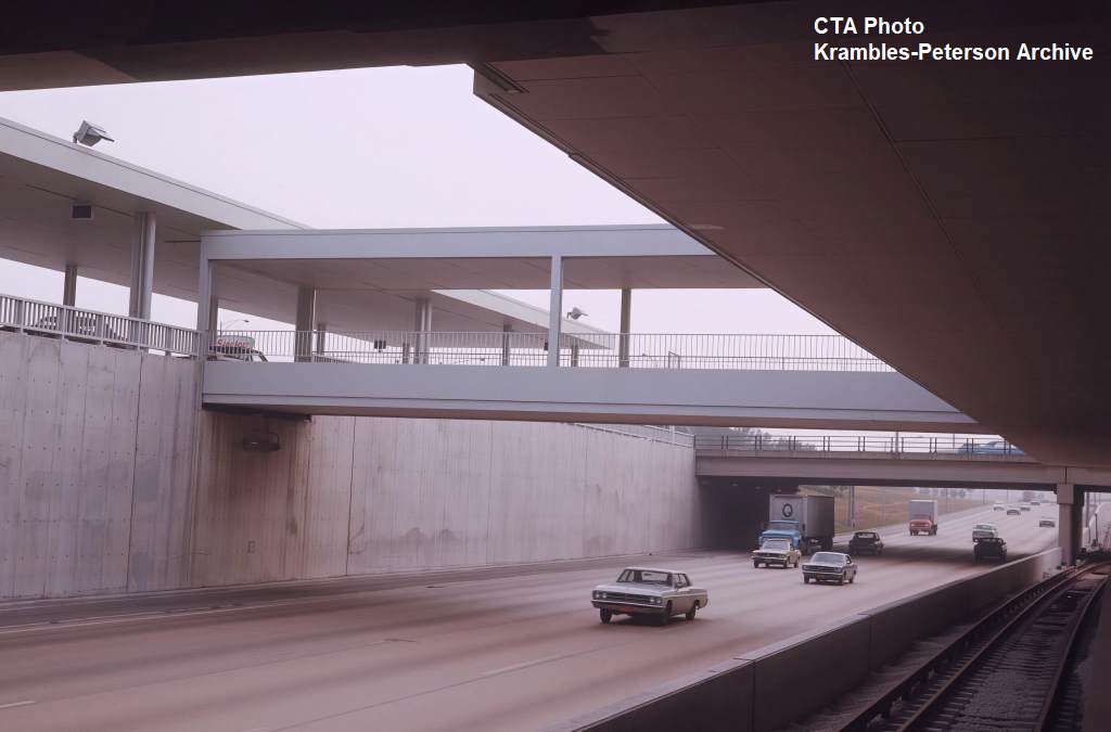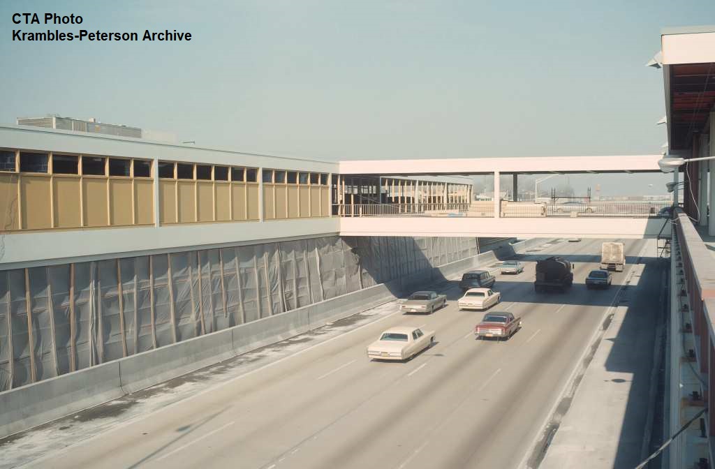 KP1751-CTA Lake-Dan Ryan, The pedestrian bridge which provided access between the Eastbound bus stop and the Garfield Rapid Transit Station - 09/17/1969