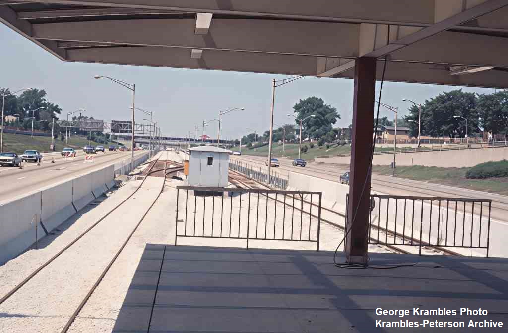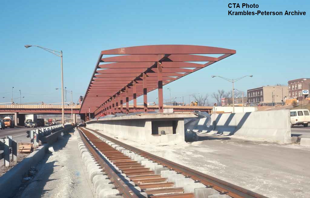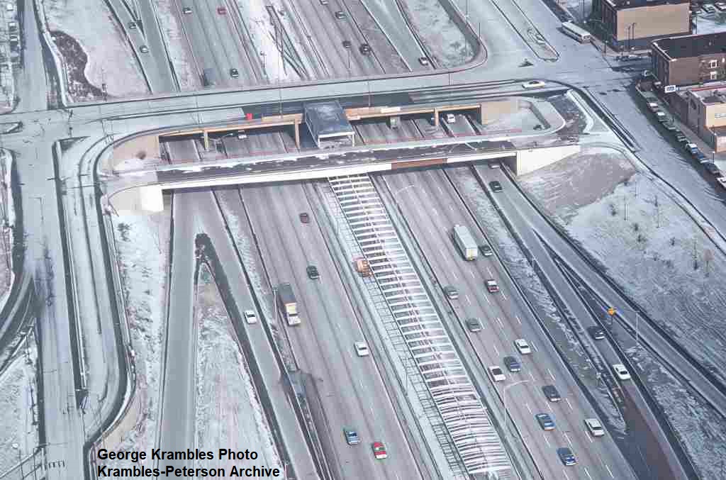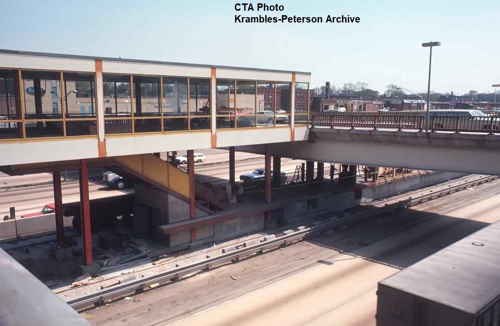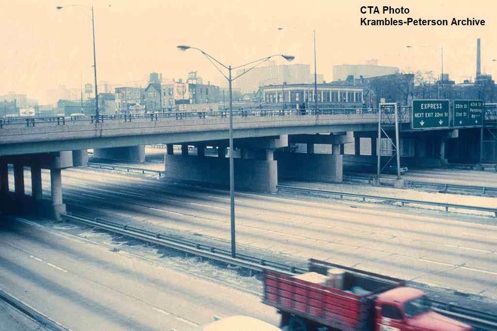 KP1751-CTA Lake-Dan Ryan, The pedestrian bridge which provided access between the Eastbound bus stop and the Garfield Rapid Transit Station - 09/17/1969