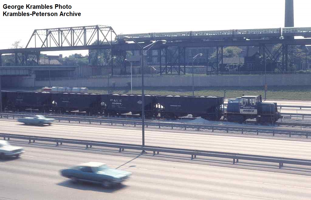KP1753-CTA Lake-Dan Ryan, The Ramco ballast train, made up of ex-P&LE hopper cars, at 61st Street - 05/24/1969