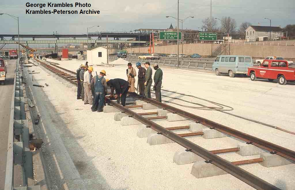 KP1755-CTA Lake-Dan Ryan, Track construction north of the 63rd Street Station - 11/05/1968