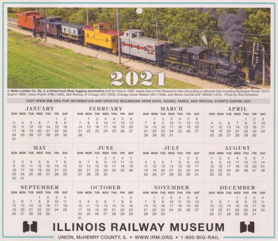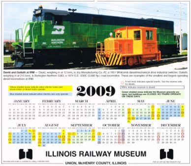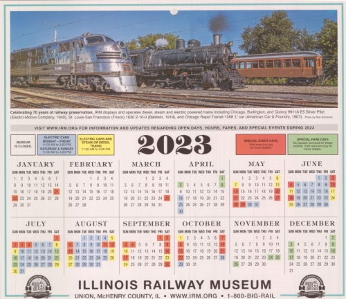 Below are thumbnails of the annual IRM Calendars.  There are links below each image pair (front & back) to bring up a higher res scan of that calendar.  Please note that the higher res images may be somewhat large and could take a while to download depending on your internet connection speed.